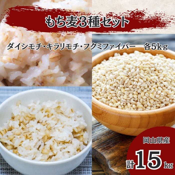 岡山県産 もち麦3種食べ比べ 計15kg「キラリモチ5kg&ダイシモチ5kg+フクミファイバー5kg」
