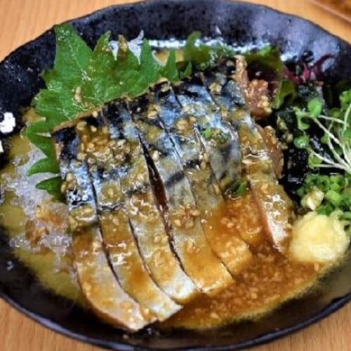 ●おろし生姜、2種の胡麻の入った甘塩っぱいタレに、丁寧にカットしたノルウェー鯖を合わせました。