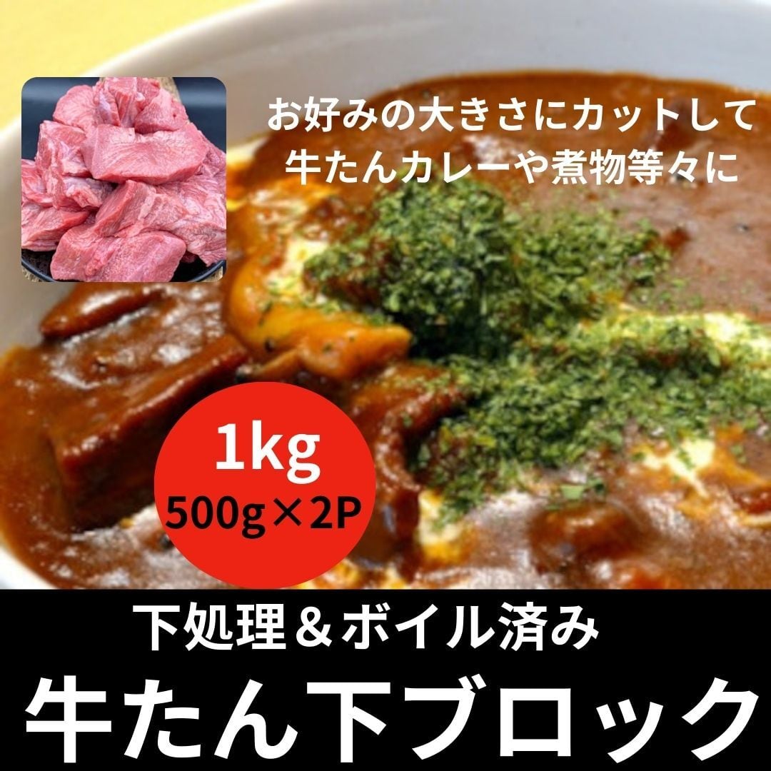 牛タン下ブロック(煮込み用)1kg(500g×2パック)(下処理済み&ボイル済み)カレーやビーフシチューに