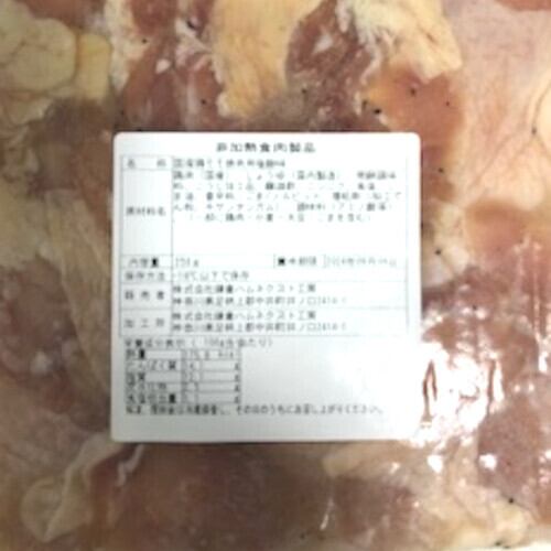 ●国産鶏モモ焼き肉用旨辛味 産地:国産 加工地:神奈川県 賞味期限:製造より半年 保存:-18℃以下冷凍保存 原材料:国産鶏肉、砂糖(国内製造)、醤油、唐辛子、にんにく、食塩、醸造酢、ごま油、味噌、コチジャン、ハバネロ末/酒精、増粘剤(加工でん粉、増粘多糖類)、酸化防止剤(V・C)、香辛料抽出物、調味料(アミノ酸等)、パプリカ色素、(一部に鶏肉・小麦・大豆・ごまを含む) 栄養成分表示(100gあたり) 熱量:196.3lkal タンパク質:14.3g 脂質:12.1g 炭水化物:7.4g 食塩相当量:1.1g