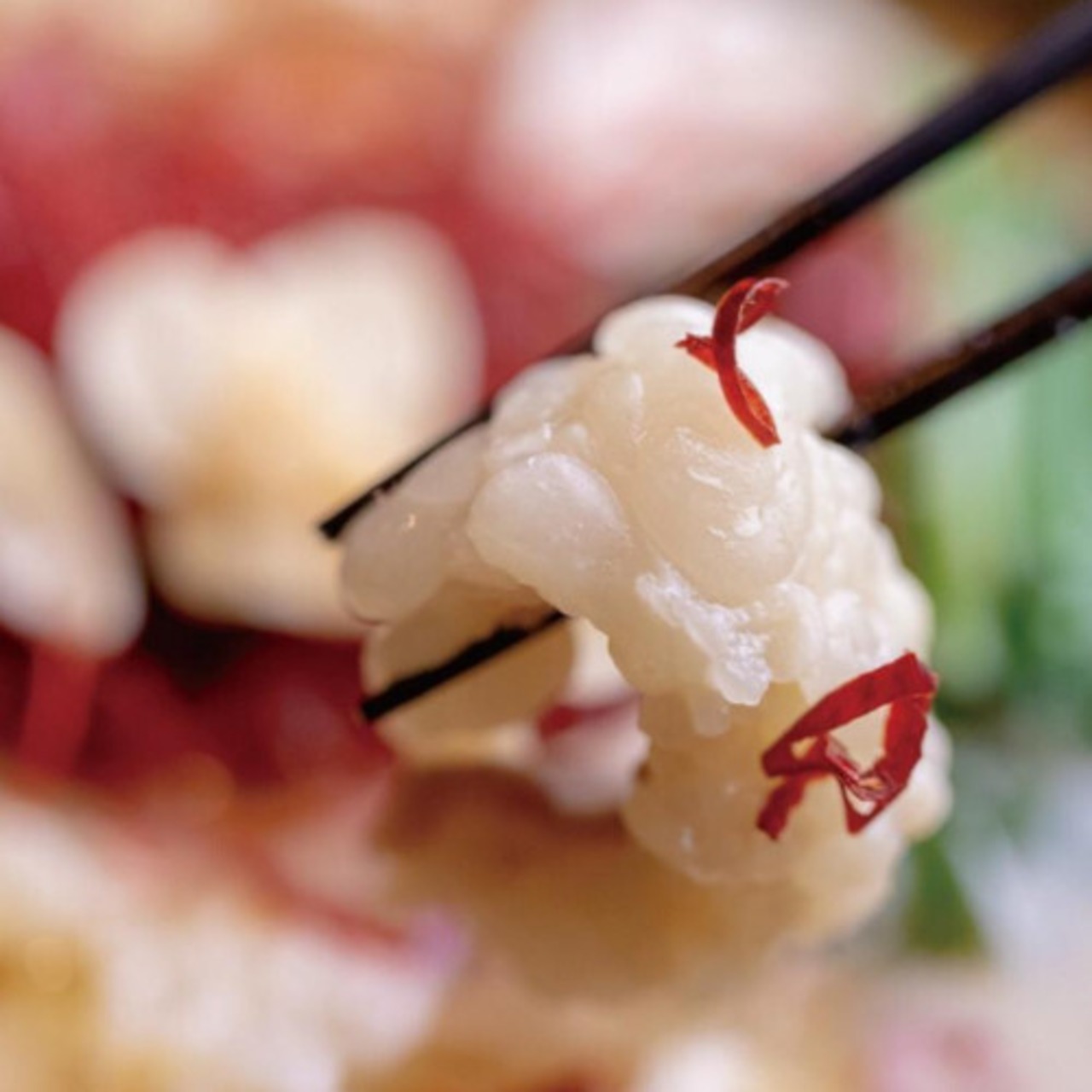 程よい脂付きに皮面が香ばしくザクザク食感! しっかりと丁寧な手洗いを行い、ひとつずつ包丁でカットしています。